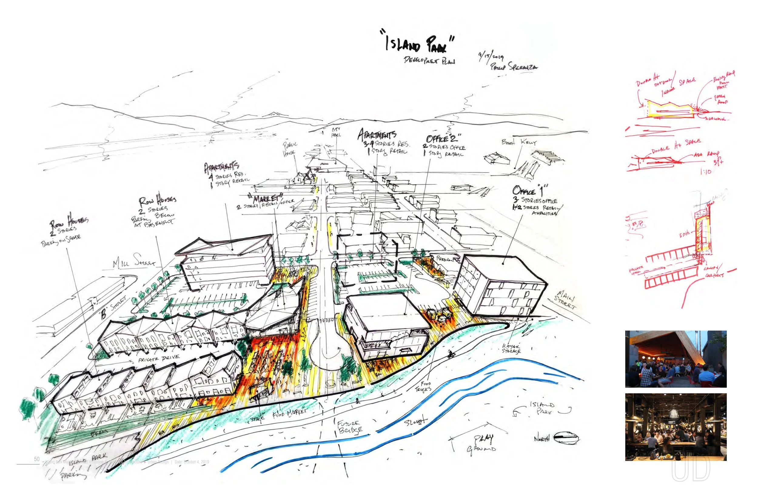 The Island Park (Water Mill) development master plan and visioning design undercovers the existing urban design vibrancy and grit of its location.